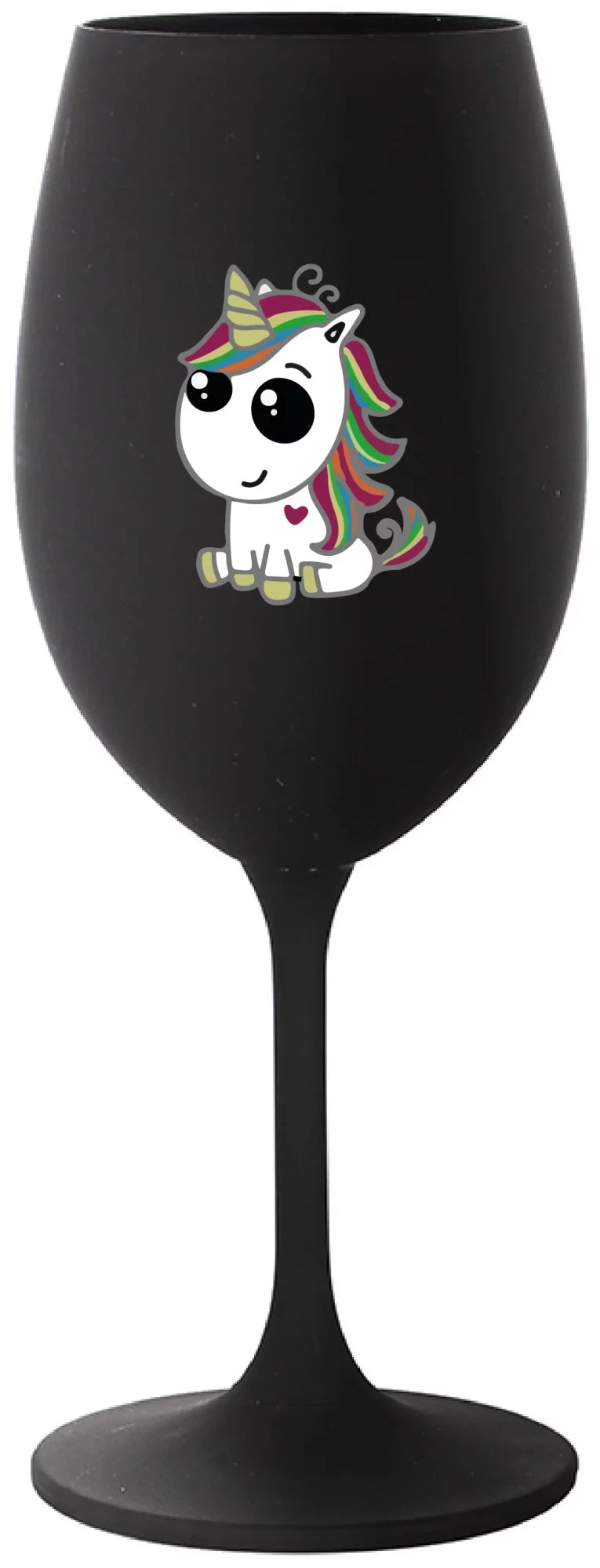 DUHOVÝ JEDNOROŽEC - černá sklenice na víno 350 ml