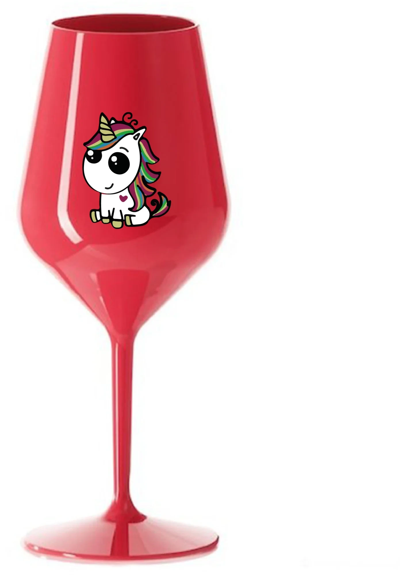 DUHOVÝ JEDNOROŽEC - červená nerozbitná sklenice na víno 470 ml