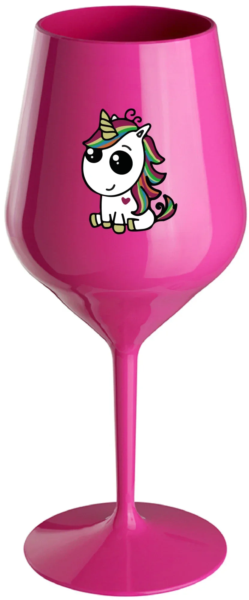 DUHOVÝ JEDNOROŽEC - růžová nerozbitná sklenice na víno 470 ml