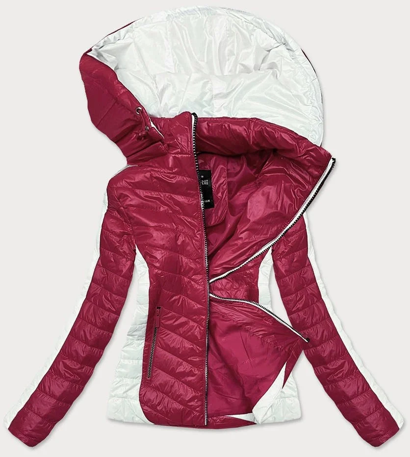 Dvoubarevná červeno/ecru dámská bunda s kapucí (6318)