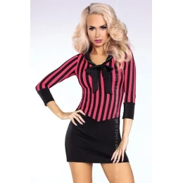 Zápas může začít! Na hřiště vstupuje sexy rozhodčí! Nelly je dvoudílná souprava nočního prádla inspirovaná sportem. Tričko má smyslný přiléhavý střih a módní 3/4 rukávy. Žebrovaný vršek s límcem zdobeným třpytivými drobnými zirkony. Na hrudi - mašle. Tanga jsou součástí balení. Složení: 88 % polyester, 12 % elastan.