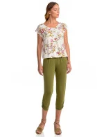 Dámské pyžamo s květovým motivem pro pocit vyjímečnosti a pohodlné spaní. Set tvoří jednobarevné kalhoty v 7/8 délce. Dvoudílné pyžamo je vyrobeno z vysoce kvalitního Micro-modalu s příměsí Elastanu. Přírodní Micro-modal poskytuje vyjímečnou měkkost a pohodlí, je prodyšný, při praní se nesráží, dobře absorbuje pot a rychle schne, zatímco Elastan dodává oděvu potřebnou pružnost.