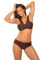 Nádherné dvoudílné dámské plavky z italské tkaniny Carvico Tessuti. Má podprsenku bandeau, která smyslně tvaruje a zvětšuje prsa, a spodní díl s ozdobným prošíváním. Podprsenka s vyztuženými košíčky s kosticemi, push-up vycpávky nejsou vyjímatelné, zapínání na zádech. Hladké kalhotky na podšívce. Plavky jsou zabalené v tašce. Plavky jsou ideální pro malé a střední poprsí. Tip: objednejte si větší velikost než obvykle.