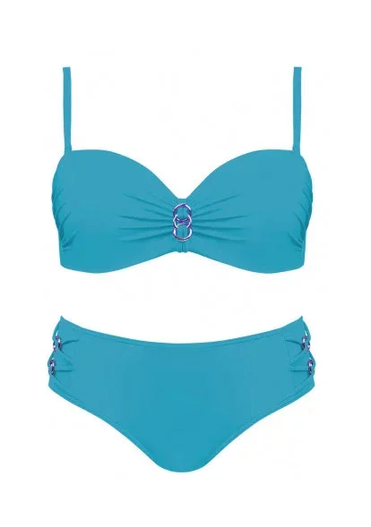 Dámské plavky dvoudílné bikiny D-RING zdobené třásněmi na podprsence a kovovými doplňky modré - Modrá - OEM