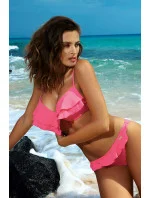 Jemné, velmi ženské dvoudílné plavky s okouzlujícími volánky: Matylda M-469.Tyto plavky vám propůjčí výjimečný šarm (a navíc vám umožní zapomenout na případné komplexy). Má skvělý střih. Byl vyroben pro malé a střední poprsí - dobře sbírá, tvaruje a zvedá prsa a výrazně je zvětšuje. Výstřih získá půvab, sex-appeal a vy maximální ženskost. Její tajemství? - jsou košíčky vyztužené jemnou pěnou, s kosticemi a poměrně velkou push-up výplní, která je tentokrát umístěna trvale uvnitř podprsenky. Volánky ve výstřihu jsou jedním z hlavních trendů léta. Ramínka jsou nastavitelná a obvod se vzadu zavazuje. Doplňují je koketní kalhotky, rovněž s volánkem. Plavky jsou vyrobeny z krásné italské tkaniny Carvico a dodávají se v řadě atraktivních plážových barev. Vyberte si ji ve svém oblíbeném!