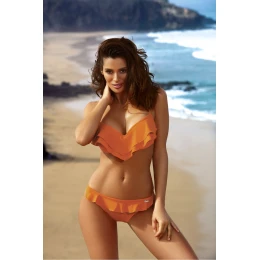 Jemné, velmi ženské dvoudílné plavky s okouzlujícími volánky: Matylda M-469.Tyto plavky vám propůjčí výjimečný šarm (a navíc vám umožní zapomenout na případné komplexy). Má skvělý střih. Byl vyroben pro malé a střední poprsí - dobře sbírá, tvaruje a zvedá prsa a výrazně je zvětšuje. Výstřih získá půvab, sex-appeal a vy maximální ženskost. Její tajemství? - jsou košíčky vyztužené jemnou pěnou, s kosticemi a poměrně velkou push-up výplní, která je tentokrát umístěna trvale uvnitř podprsenky. Volánky ve výstřihu jsou jedním z hlavních trendů léta. Ramínka jsou nastavitelná a obvod se vzadu zavazuje. Doplňují je koketní kalhotky, rovněž s volánkem. Plavky jsou vyrobeny z krásné italské tkaniny Carvico a dodávají se v řadě atraktivních plážových barev. Vyberte si ji ve svém oblíbeném!