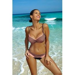 Připravte se na pláž! Objednejte si sexy dvoudílné plavky v nejmódnějším provedení právě teď! Podprsenka pokrytá prolamovanou "síťovinou" odkazuje na žhavé trendy letošního léta. Pod ním se skrývá exotické zbarvení, které krásně zdobí tělo. Podprsenka se vyznačuje vyztuženými košíčky s kosticemi a vestavěnou, neodnímatelnou push-up výplní, která je k dispozici v každé velikosti. Skvěle shromáždí, pozvedne, vymodeluje a opticky zvětší vaše prsa. Součástí jsou také bikiny s prolamovanými vsadkami na přední straně. Opravdu skvělý model!