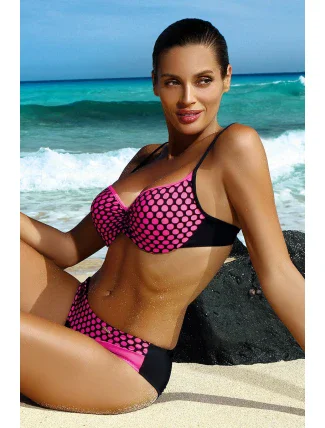 Připravte se na pláž! Objednejte si sexy dvoudílné plavky v nejmódnějším provedení právě teď! Podprsenka pokrytá prolamovanou "síťovinou" odkazuje na žhavé trendy letošního léta. Pod ním se skrývá exotické zbarvení, které krásně zdobí tělo. Podprsenka se vyznačuje vyztuženými košíčky s kosticemi a vestavěnou, neodnímatelnou push-up výplní, která je k dispozici v každé velikosti. Skvěle shromáždí, pozvedne, vymodeluje a opticky zvětší vaše prsa. Součástí jsou také bikiny s prolamovanými vsadkami na přední straně. Opravdu skvělý model!