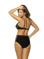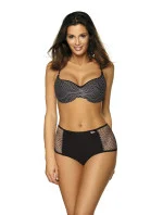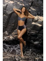 Dvoudílné plavky s vysokým pasem - krásné a velmi pohodlné. Špetka retro stylu v nejžhavějších trendech na pláži.Podprsenka s vyztuženými košíčky, kosticemi a vestavěnou permanentní push-up výplní se zaměřuje na pěknou kolekci a pozvednutí prsou se současným optickým zvětšením. Ažurová síťovina na košíčcích vypadá skvěle. Nastavitelné, neodnímatelné popruhy. Vysoké kalhotky s prolamovanými vsadkami na bocích. Hladká přední část s omezenou elasticitou jemně tvaruje tělo.