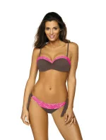 Velmi ženské plavky s krajkovým lemováním a šťavnatými barvami. Na rozpáleném písku bude vypadat senzačně. Krásné barvy plavek vás připraví na (jistě) úspěšné opalování. Podprsenka krásně zdobí tělo, zatímco barevné lemování zvýrazňuje výstřih a okamžitě upoutá pozornost. Tyto plavky doporučujeme především pro malá a střední prsa, protože na nich vypadají nejlépe. Podprsenka s vyztuženými košíčky obohacenými velrybími kosticemi a připojenou velkou push-up výplní, dostupná ve velikostech (S, M, L, XL), pozvedne, zpevní a opticky zvětší prsa a vytvoří "sexy dekolt". Výplň push up lze z modelu zcela vyjmout. Nastavitelné popruhy, které lze pohodlně odepnout. Nastavitelná ramínka, pohodlně odepínatelná. Obvod zavázaný na zádech pro dokonalé přizpůsobení. Bokové kalhotky, svůdně zavázané na bocích, na pohodlné podšívce, s krajkovým lemem. Skvělý návrh na léto!