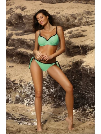 Velmi ženské dvoudílné plavky s jemným krajkovým lemem ve výstřihu. V zajímavých, šťavnatých barvách. Podprsenka nádherně shromažďuje prsa, zvedá je a jako vždy u výrobce je opticky zvětšuje. To vše díky dobře modelovaným, vyztuženým košíčkům s podvazky a push up košíčkům, tentokrát zabudovaným napevno do modelu (push up je k dispozici ve velikostech S, M, L, XL). Jemná a intenzivní barva plavek je ideální na slunce a zvýrazní vaše opálení. Ramínka jsou jemná, tenká a s nastavitelnou délkou. Obvod je pohodlně svázán na zadní straně. Kalhotky brazilského střihu s dodatečným všitím uprostřed zad - sexy, zdobí boky a opticky zaoblují zadeček. Abyste dosáhli požadovaného efektu, měli byste je pevně stáhnout nahoru po bocích.
