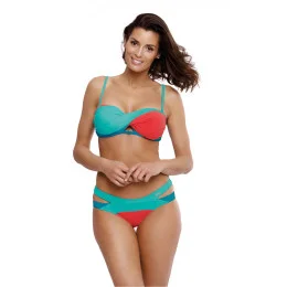 Plavky Selena M-545 jsou jedny z nejlepších plavek pro malé a střední poprsí. Vyrobeno z italské tkaniny v exotických barvách. Vyznačuje se neobvyklou podprsenkou se "zkroucenými", vyztuženými košíčky s kosticemi a push-up vycpávkami, které prsa dobře shromažďují, zvedají a zvětšují, čímž ženě dodávají výjimečně přirozená, krásná a plná prsa. Vycpávky push-up se dodávají ve velikostech M a L a nelze je z modelu vyjmout. Má plně odnímatelné ramenní popruhy a obvod se zapínáním na přezku. Doplňují ho fenomenální kalhotky s "prasklinami" na bocích. Báječné tropické barvy, mnoho variant na výběr, kontrastní kombinace, pastelové a intenzivní tropické odstíny... Vše, abyste vypadali skvěle.