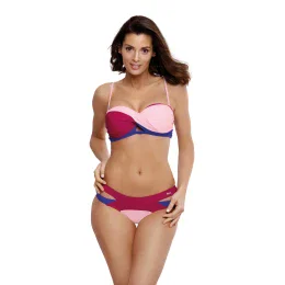 Plavky Selena M-545 jsou jedny z nejlepších plavek pro malé a střední poprsí. Vyrobeno z italské tkaniny v exotických barvách. Vyznačuje se neobvyklou podprsenkou se "zkroucenými", vyztuženými košíčky s kosticemi a push-up vycpávkami, které prsa dobře shromažďují, zvedají a zvětšují, čímž ženě dodávají výjimečně přirozená, krásná a plná prsa. Vycpávky push-up se dodávají ve velikostech M a L a nelze je z modelu vyjmout. Má plně odnímatelné ramenní popruhy a obvod se zapínáním na přezku. Doplňují ho fenomenální kalhotky s "prasklinami" na bocích. Báječné tropické barvy, mnoho variant na výběr, kontrastní kombinace, pastelové a intenzivní tropické odstíny... Vše, abyste vypadali skvěle.