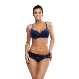Něco úplně jiného! Tyto sexy a velmi elegantní plavky jsou vyrobeny z italské tkaniny připomínající měkký velur. Má nádherný perleťový lesk a nádherný vzhled, okamžitě dodává šarm, láká oči a nádherně zdobí tělo. Push-up podprsenka s tvarovanými, vyztuženými košíčky s kosticemi v klasické, osvědčené, velmi dobré konstrukci - umožňuje shromáždit, pozvednout a opticky zvětšit prsa. Push-up je součástí každé velikosti plavek a není z modelu odnímatelný. Ramínka jsou nastavitelná, obvod se pohodlně zavazuje vzadu. Úhledné kalhotky s páskem vpředu. Na výběr je mnoho fascinujících barev. Objednejte si ji a přesvědčte se sami. Doporučujeme ji na 100 %.