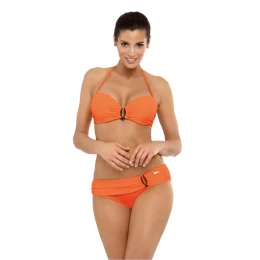 Cameron M-523 jsou dvoudílné plavky v krásné barvě, zdobené stylovými šperky. Podprsenka v bandeau konstrukci má vyztužené košíčky (bez push-upky) obohacené o kostice, díky nimž pěkně tvaruje dekolt a udržuje prsa ve správné poloze. Střih pěkně shromažďuje prsa, což je ideální na pláž. Pásek vede přes krk a je odnímatelný. Plavky mají vzadu zavazování na gumičku. Kalhotky jsou velmi pohodlné, přední část je zdobena páskem s drahokamy. Je vyroben z vysoce kvalitní italské tkaniny, díky níž vypadá velmi elegantně. Zvolte si ji a dovolená se vám jistě vydaří!