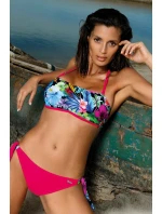 Shakira M-536 jsou dvoudílné plavky s květinovou podprsenkou doplněné krásnými prázdninovými barvami. Konstrukce bandeau s vyztuženými košíčky (bez push-up) umožňuje shrnout a zaoblit poprsí. Pásek vede přes krk, má nastavitelnou délku a je odnímatelný (díky tomu jsou plavky ideální i na opalování). Hladké kalhotky, které se pohodlně zavazují na bocích, umožňují dokonalé přizpůsobení tělu. Plavky jsou vyrobeny z vysoce kvalitní italské tkaniny.