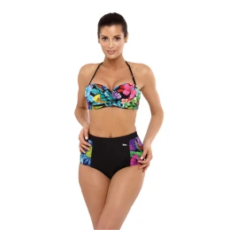 Fenomenální plavky z nové kolekce Marko. Báječně barevné, s romantickými květy a vyšším spodním okrajem, který odkazuje na retro styl... Podprsenka s vyztuženými košíčky, s kosticemi a velkým push-up efektem zvedá, vypíná a opticky zvětšuje prsa, takže na pláži budete vypadat sexy. Push-up se dodává v každé velikosti plavek a není z modelu odnímatelný. Popruhy jsou zcela odnímatelné. Obvod je svázán vzadu. Spodní část je vyšší, zakrývá bříško a květinové boky zeštíhlují boky. Jedny z nejlepších plavek této sezóny! Obrovská dávka ženskosti! Italská tkanina.
