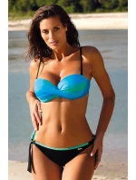 Stylové plavky ušité z jedinečné barevné látky, v níž jedna barva plynule přechází v druhou a vytváří tak zajímavý celek. Zvýrazněné exotickými barvami. Sexy díky konstrukci podprsenky. Košíčky s podvinutím a velkou push-up výplní, trvale umístěné v modelu (bez možnosti jejich vyjmutí). Push-up je k dispozici v každé velikosti. Dokonale shromažďuje a zvedá prsa a zvětšuje je téměř dvakrát. Od prvního pohledu potěší a láká. Popruhy lze z modelu zcela odejmout. Kalhotky s dobrým "midi" střihem, pěkně zdobí boky a poskytují plné pohodlí. Vazby na bocích umožňují přizpůsobit si ho svým potřebám. Vysoce kvalitní italská tkanina.