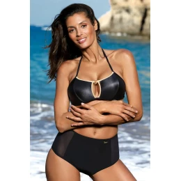 Fenomenální plavky s efektem Wet Look. Dvoudílný model s vysokými kalhotkami s průhlednými boky a vyztuženou podprsenkou, která vychází z konstrukce pohodlného sportovního topu.