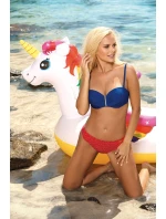 Elegantní plavky se špetkou prázdninové lehkosti. Souprava obsahuje hladkou podprsenku, uprostřed mírně staženou, s krásnou broží ve zlaté barvě a samozřejmě velkou push-upkou, kombinovanou se sexy brazilskými kalhotkami.