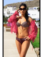 Sladké dvoudílné plavky zdobené jedním z nejoblíbenějších plážových vzorů - okouzlujícím kostkovaným vzorem. Model push-up vám umožní vypadat zajímavě, módně a zároveň sexy. Vynikající konstrukce podprsenky umně shromažďuje prsa z boků, tvaruje je, přibližuje k sobě a zvětšuje je díky push-up výplni (která je z podprsenky vyjímatelná). Podprsenka se zavazuje za krkem a zapíná vzadu. Hladké, pohodlné kalhotky klasického střihu s ozdobným páskem v horní části také dodávají charakter.
