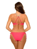 Sexy dvoudílné plavky z italské tkaniny Carvico Tessuti. Podprsenka s vyztuženými košíčky, s kosticemi a neodnímatelnými push-up vycpávkami. Podprsenka zapínaná na zádech, ozdobná, nastavitelná ramínka, zapínání atypické. Kalhotky s nízkým střihem a podšívkou, hladké, zavázané.