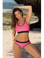 Dvoudílné plavky z italské tkaniny Carvico Tessuti. Podprsenka bez push-up, v podobě elastického topu. Podprsenka s odnímatelnými vložkami, ramínka nejsou odnímatelná a nastavitelná. Kalhotky s malou elasticitou, hladký, pohodlný střih. Kostým je podšitý, zabalený v sáčku.
