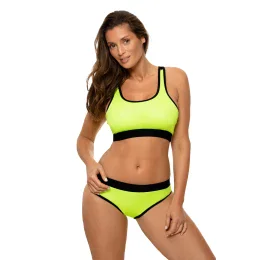 Dvoudílné plavky z italské tkaniny Carvico Tessuti. Podprsenka bez push-up, v podobě elastického topu. Podprsenka s odnímatelnými vložkami, ramínka nejsou odnímatelná a nastavitelná. Kalhotky s malou elasticitou, hladký, pohodlný střih. Kostým je podšitý, zabalený v sáčku.