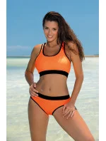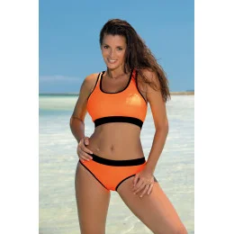 Dvoudílné plavky z italské tkaniny Carvico Tessuti. Podprsenka bez push-up, v podobě elastického topu. Podprsenka s odnímatelnými vložkami, ramínka nejsou odnímatelná a nastavitelná. Kalhotky s malou elasticitou, hladký, pohodlný střih. Kostým je podšitý, zabalený v sáčku.