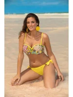 Krásné dvoudílné plavky určené pro střední až větší prsa. Opravdová lahůdka. Šikmé vsadky na košíčcích, lehce sportovní design, skvělý střih a barvy, které navodí letní atmosféru. Pokud hledáte něco módního a pohodlného, jste na správném místě. Košíčky jsou profesionálně modelované, vyztužené a v dolní části obohacené kosticemi. Skvěle sbírají, zvedají, drží na místě a správně tvarují poprsí. Vytvářejí pěkný výstřih. Košíčky C a D mají dodatečné lehké push up polstrování pro zlepšení tělesných proporcí. Ostatní košíčky (od E do H) jsou bez push up. Ramínka jsou délkově nastavitelná, obvod dobře drží, je elastický a pohodlně se zapíná na přezku.Kalhotky jsou mírně vyšší, vpředu jsou podšité, s kontrastním lemováním. Vypadají skvěle a na pláži vám jistě poskytnou požadované pohodlí.