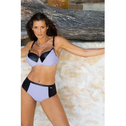 Dvoudílné plavky Perfect Fit, perfektně padnoucí. Tepelně lisované košíčky, stálá výplň, malý push-up. Ramenní popruhy nastavitelné na širší, přizpůsobené velikosti. Vyšší střih kalhotek s pohodlným střihem, nízká elasticita. Vyrobeno z italské tkaniny Carvico Tessuti. Glamour dekorace. Polský výrobek.