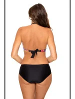 Dvoudílné plavky z italské tkaniny Carvico Tessuti. Podprsenka se zavazuje na zádech, s kosticemi s neodnímatelnými push-up vložkami. Push-up efekt s krásným, přirozeným vzhledem. Hladké kalhotky s podšívkou a prošíváním na bocích. Ideální pro malé a střední poprsí. Nastavitelné popruhy, atypicky zapínané. Tip: objednejte si větší velikost než obvykle.
