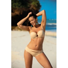 Dvoudílné plavky s push-up efektem pro krásný a přirozený vzhled. Podprsenka Bardot se zapíná vzadu. Push-up střední velikosti odnímatelný z modelu. Odnímatelné, nastavitelné popruhy. Ideální pro malé a střední poprsí. Kalhotky vyšší, nepříliš pružné. Vyrobeno z italské tkaniny Carvico Tessuti. Polský výrobek.