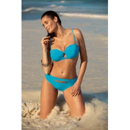 Dvoudílné plavky s push-up efektem pro krásný a přirozený vzhled. Podprsenka Bardot se zapíná vzadu. Push-up střední velikosti odnímatelný z modelu. Odnímatelné, nastavitelné popruhy. Ideální pro malé a střední poprsí. Kalhotky vyšší, nepříliš pružné. Vyrobeno z italské tkaniny Carvico Tessuti. Polský výrobek.