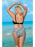 Dvoudílné plavky v zajímavých barvách. Vyztužená podprsenka s kosticemi, zapínání na zádech, nastavitelná ramínka. Podšité kalhotky pohodlného střihu, z látky se zajímavým vzorem.