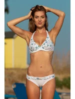 Atraktivní bílé dvoudílné plavky Daisy. Výjimečně elegantní model s měkkou podprsenkou se vzorem půvabných modrých květů. Košíčky s kosticemi se postarají o dokonalé držení obvodu, zvednou prsa a vtáhnou je dovnitř, čímž vytvoří efekt velkého, pevného a smyslného poprsí. Představuje se mimořádně působivě a sexy. Zavazování za krkem a na zádech. Pohodlné kalhotky s ozdobným barevným proužkem na přední straně. Plavky jsou odolné vůči chlóru a UV záření, takže jsou ideální na opalování, plavání a relaxaci u vody.