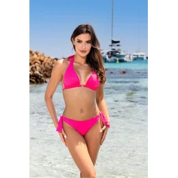 Tyto krásné plavky vás potěší svým designem a pohodlným nošením. Podprsenka s vyztuženými košíčky poskytuje vynikající oporu a tvaruje poprsí a možnost zavazování na zádech i za krkem umožňuje dokonalé přizpůsobení vaší postavě. Plavky se skládají ze dvou dílů, což vám dává volnost při komponování vašeho stylingu. Kalhotky jsou decentní a svůdně odhalující, zatímco nízký střih zdůrazňuje boky. Zavazování na nohavičkách umožňuje upravit pas pro dokonalé přizpůsobení. Třpytivý úplet těmto plavkám dodává eleganci a přitažlivost, díky čemuž budete na pláži nebo u bazénu poutat pozornost. Navíc zvýrazní vaše opálení a dodá vám zářivý vzhled. Tyto plavky jsou baleny v praktickém pouzdře, které usnadňuje jejich skladování a přepravu. Byl navržen a ušit v Polsku, což zaručuje nejvyšší kvalitu zpracování a pozornost věnovanou detailům. Užijte si výjimečný styl a pohodlí na pláži nebo u bazénu v těchto elegantních a funkčních plavkách.