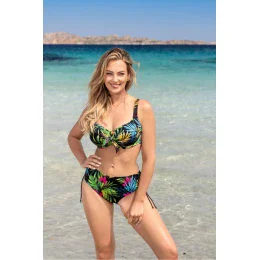 Plavky kombinující eleganci, pohodlí a funkčnost jsou ideální pro ženy, které na pláži nebo u bazénu ocení pohodlí a styl. Vyztužená podprsenka, zapínaná na zádech, s bočním a spodním vyztužením, zaručuje vynikající oporu a stabilitu pro plnější poprsí. Hluboké, pohodlné košíčky dokonale sedí na poprsí a zajišťují pohodlí a estetický vzhled. Plavky se skládají ze dvou částí, což umožňuje volnost pohybu a přizpůsobení střihu. Pohodlný střih, podšité kalhotky zaručují pocit jistoty a pohodlí při nošení. Jejich vzorovaný design a přídavná ramínka dodávají jedinečný nádech. Vynikající volba také pro ženy s větším poprsím, kterým nabízí stabilitu a oporu potřebnou pro plážové aktivity. Ramínka jsou neodnímatelná, ale nastavitelná, což umožňuje přizpůsobení individuálním preferencím a pohodlí při nošení. Tyto plavky jsou vyrobeny z rychleschnoucího materiálu, takže si můžete užívat plážových radovánek bez obav z dlouhého schnutí. Polský výrobek zabalený v elegantní tašce je zárukou kvalitního zpracování a spokojenosti s nákupem. Tyto plavky nejen podtrhují přirozenou krásu, ale také dávají každé ženě pocit výjimečnosti a sebevědomí v každé situaci.