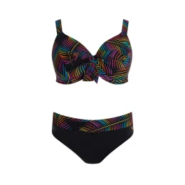 Elegantní dvoudílný plavkový kostým vytvořený s ohledem na ženy s větším poprsím. Podprsenka s kosticemi poskytuje skvělé podporu, pevné košíčky krásně tvarují a zdůrazňují postavu. Nastavitelné ramínka umožňují ideální přizpůsobení postavě, zatímco pohodlné zapínání na kovovou sponu v obvodu zaručuje stabilitu a pohodlí nošení. Součástí jsou klasické kalhotky a pas s ozdobnou lemovkou, který celku dodává eleganci a jedinečný charakter. Kostým je k dispozici ve velikostech Max Sizes, navržen s ohledem na pohodlí, podporu a ženský styl.