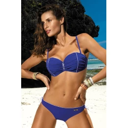 Elegantní dvoudílné plavky s krásnou broží uprostřed podprsenky. Košíčky jsou řádně vyztužené, vyztužené kosticemi a obohacené o push up - shromažďují prsa, dobře je zvedají, udržují je ve správné poloze a sexuálně je zvětšují. Push up je k dispozici od velikosti S do XL včetně, lze jej z modelu vyjmout. Velmi pěkná linie podprsenky potěší svým šarmem. Výstřih zde vypadá opravdu fenomenálně. Jemné ozdobné lemování na hladké tkanině. Popruh lze odepnout, což umožňuje rovnoměrné opálení ramen, mají nastavitelnou délku. Elastický obvod, zapínání na přezku. Kalhotky jsou elastické s bočními šňůrkami, takže si můžete nastavit šířku boků - od tradičních až po více sexy... Volba je na vás, pro nás je to hit! Rozhodně doporučujeme!