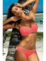 Elegantní dvoudílné plavky s krásnou broží uprostřed podprsenky. Košíčky jsou řádně vyztužené, vyztužené kosticemi a obohacené o push up - shromažďují prsa, dobře je zvedají, udržují je ve správné poloze a sexuálně je zvětšují. Push up je k dispozici od velikosti S do XL včetně, lze jej z modelu vyjmout. Velmi pěkná linie podprsenky potěší svým šarmem. Výstřih zde vypadá opravdu fenomenálně. Jemné ozdobné lemování na hladké tkanině. Popruh lze odepnout, což umožňuje rovnoměrné opálení ramen, mají nastavitelnou délku. Elastický obvod, zapínání na přezku. Kalhotky jsou elastické s bočními šňůrkami, takže si můžete nastavit šířku boků - od tradičních až po více sexy... Volba je na vás, pro nás je to hit! Rozhodně doporučujeme!