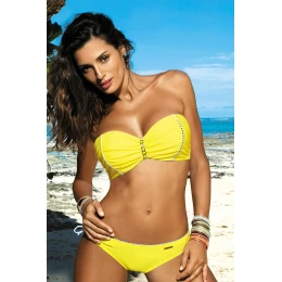 Elegantní dvoudílné plavky s krásnou broží uprostřed podprsenky. Košíčky jsou řádně vyztužené, vyztužené kosticemi a obohacené o push up - shromažďují prsa, dobře je zvedají, udržují je ve správné poloze a sexuálně je zvětšují. Push up je k dispozici od velikosti S do XL včetně, lze jej z modelu vyjmout. Velmi pěkná linie podprsenky potěší svým šarmem. Výstřih zde vypadá opravdu fenomenálně. Jemné ozdobné lemování na hladké tkanině. Popruh lze odepnout, což umožňuje rovnoměrné opálení ramen, mají nastavitelnou délku. Elastický obvod, zapínání na přezku. Kalhotky jsou elastické s bočními šňůrkami, takže si můžete nastavit šířku boků - od tradičních až po více sexy... Volba je na vás, pro nás je to hit! Rozhodně doporučujeme!
