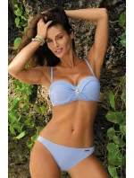 Jedny z nejhezčích a nejlepších plavek tohoto léta. Velmi elegantní a mimořádně ženská. Podprsenka má vyztužené košíčky, kostice a push-up výplň, kterou lze v případě potřeby vyjmout. Dokonale pozvedne prsa, vytvaruje je, zvětší je... Zvláště pěkně vypadá brož ve zlaté barvě umístěná uprostřed. Nastavitelné, odnímatelné ramenní popruhy. Obvod se pohodlně zapíná sponou. Dno se štíhlými boky, opticky prodloužené nohy. Velmi ženské a pohodlné.