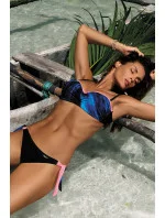 Jedinečné plavky, v nichž si se vzhledem pohrávají zajímavé odlesky na tmavším pozadí. Něco takového jste ještě nezažili! Podprsenka potěší svým vzhledem a konstrukcí - dokonale shromažďuje prsa, pevně je zvedá a opticky zvětšuje. Vytváří výstřih, o kterém sní většina žen. Model se doporučuje pro malá a střední prsa. Košíčky jsou vyztužené, s kosticemi a push-up košíčky (k dispozici ve velikostech S, M, L, XL). Popruhy jsou odnímatelné a mají nastavitelnou délku. Kalhotky se pohodlně zavazují na bocích.