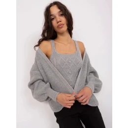 Šedý dámský dvoudílný komplet - top a svetr (8019)