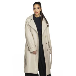 Béžový dvouřadový klasický dámský kabát z ekologické kůže AnnGissy (AG6-30)