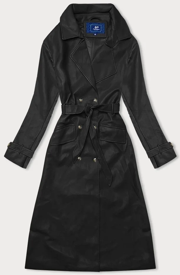 Černý dvouřadový klasický dámský kabát z ekologické kůže AnnGissy (AG6-30)