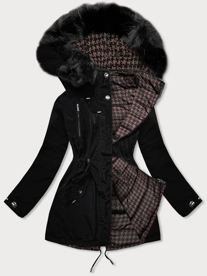 Černo-hnědá oboustranná dámská zimní bunda (w557)