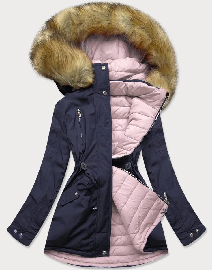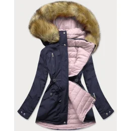 Tmavě modro-růžová oboustranná dámská zimní bunda s kapucí (w213big)