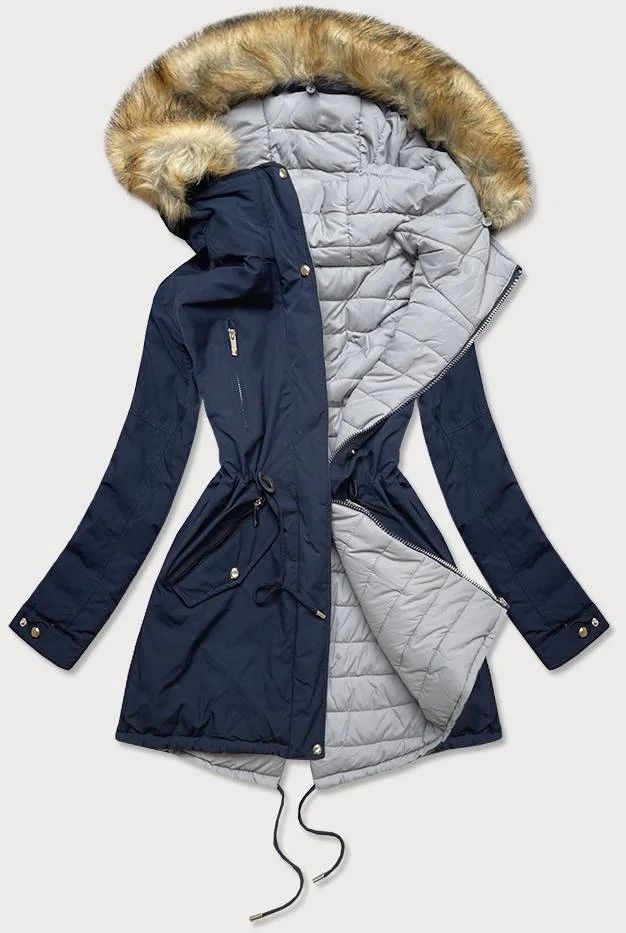 Tmavě modro-šedá oboustranná dámská zimní bunda s kapucí (w210)
